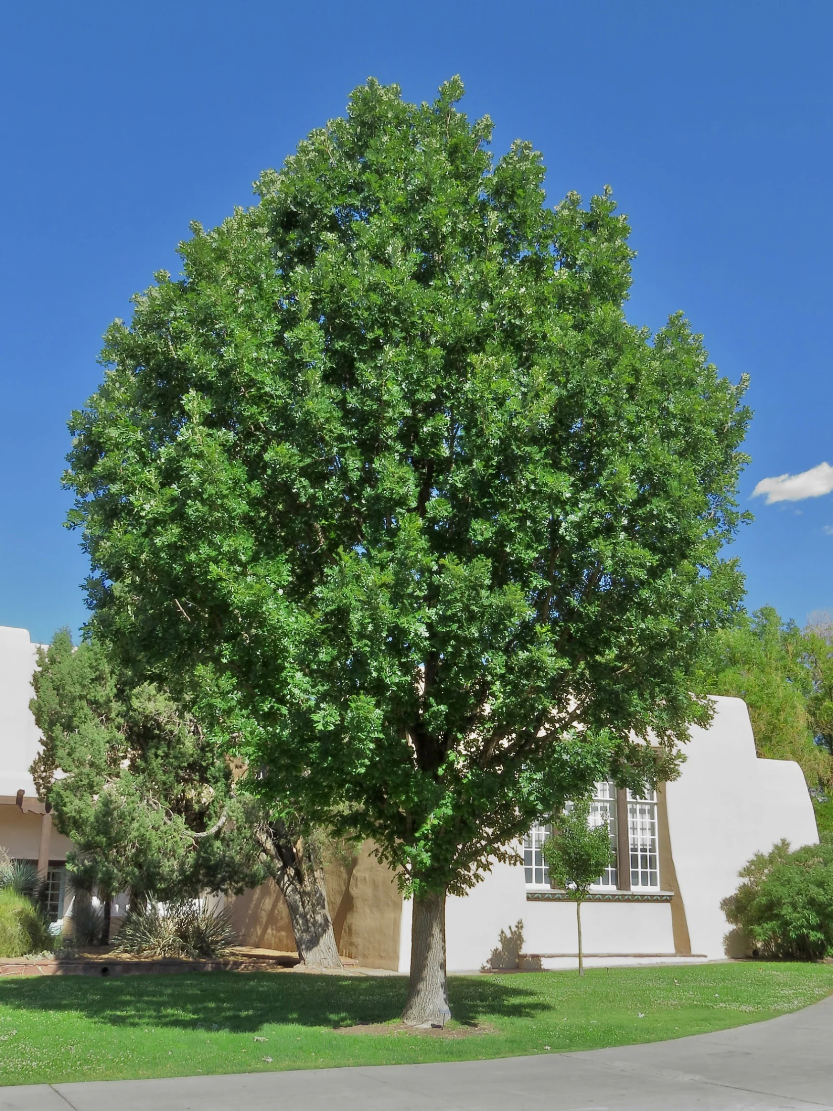 Description: A majestic, slow-growing tree with a broad canopy and lobed leaves.
