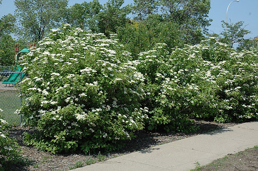 Description: Showy white flower clusters give way to bright red berries in the fall.